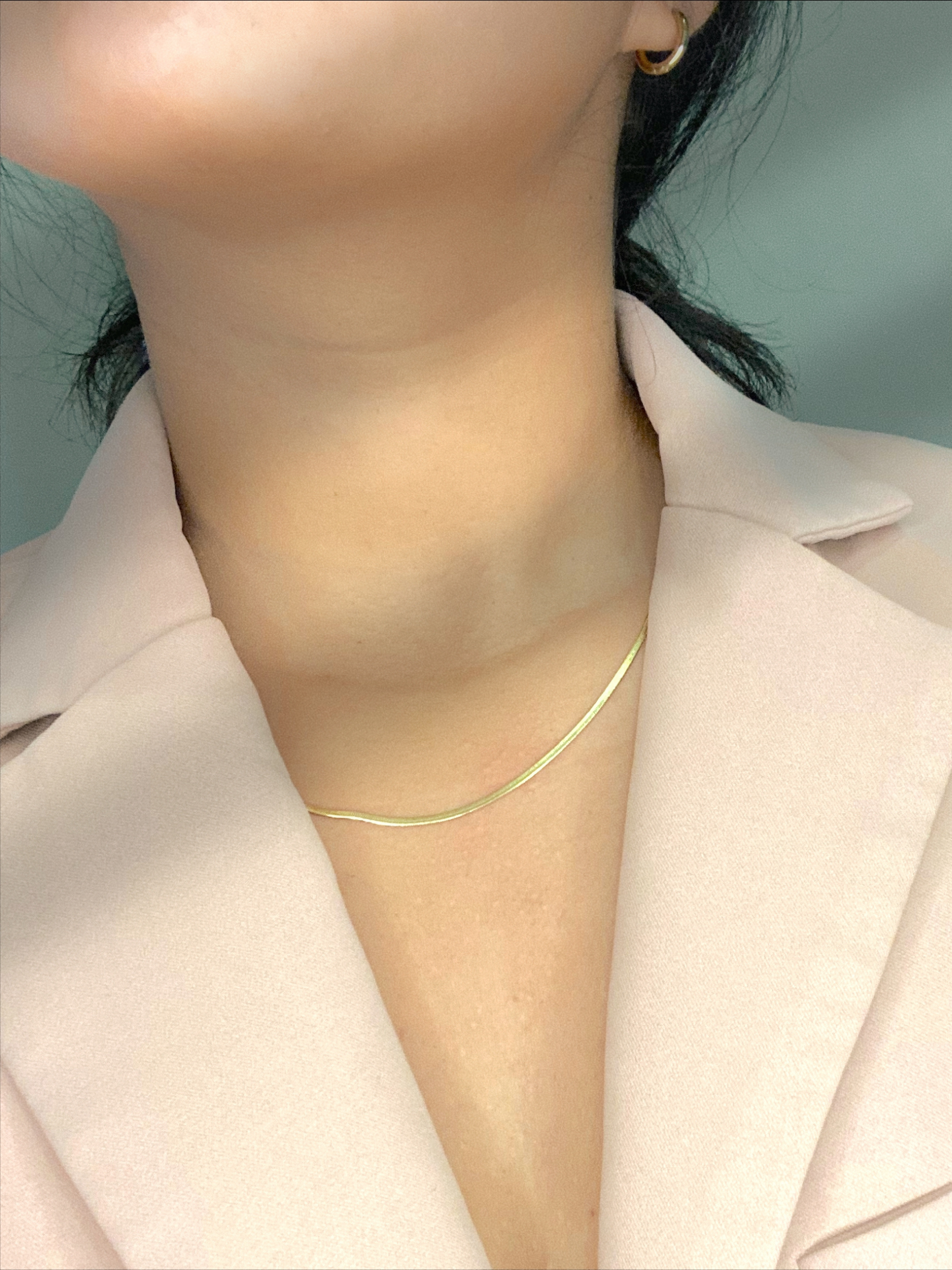 Looking for a dainty and elegant necklace to elevate your everyday look? Look no further than our MINI DEANNE herringbone necklace! A smaller version of our popular DEANNE necklace, this piece is perfect for those who love delicate and timeless jewelry.