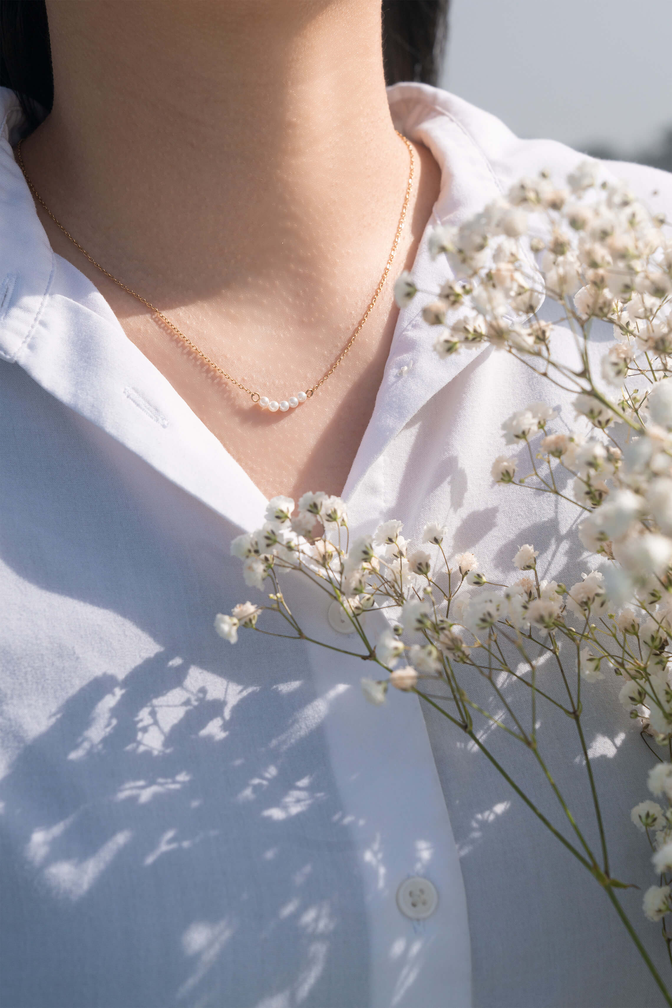Introducing PHOEBE, our dainty pearl necklace that adds the perfect touch of elegance to your outfit. The high-quality freshwater pearls are carefully selected and strung together to create a timeless and sophisticated piece. Wear PHOEBE as a standalone piece to highlight its beauty, or layer it with our best-selling necklaces for a more personalized look.